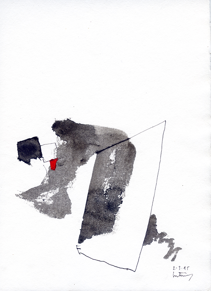 .3. 95, Untitled, ink/watercolour/handmade paper, approx. 32×25 cm, in Halbe magnetic frame, 30×40 cm