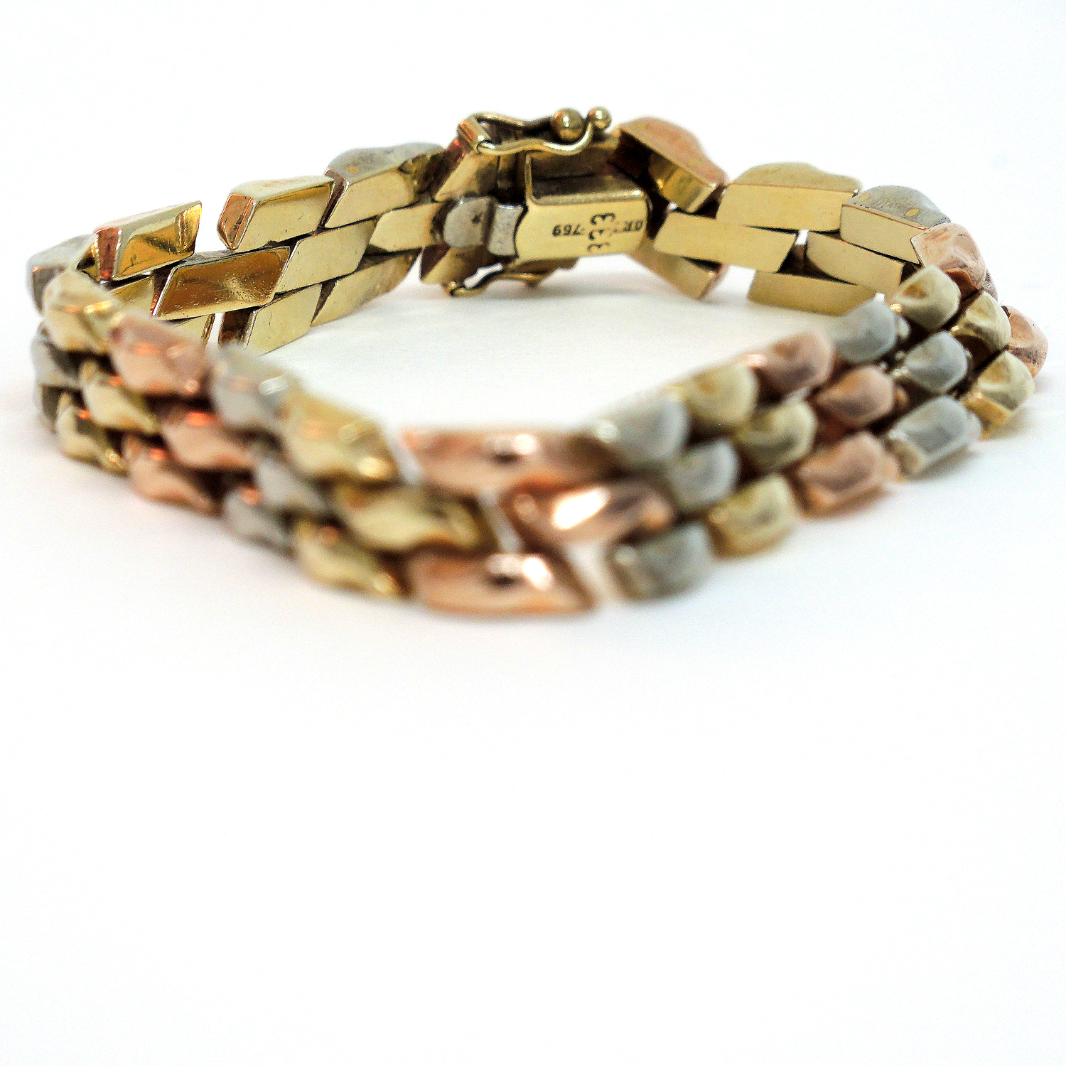 Tricolor Gold Bracelet ca. 1940, 18 ct. gold patinated in red and white gold