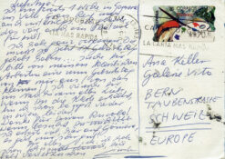 Pedraces, Alta Badia, 2004, gouache/ink/paper, 15×10.5 cm, in postcard frame/anti-reflective glass