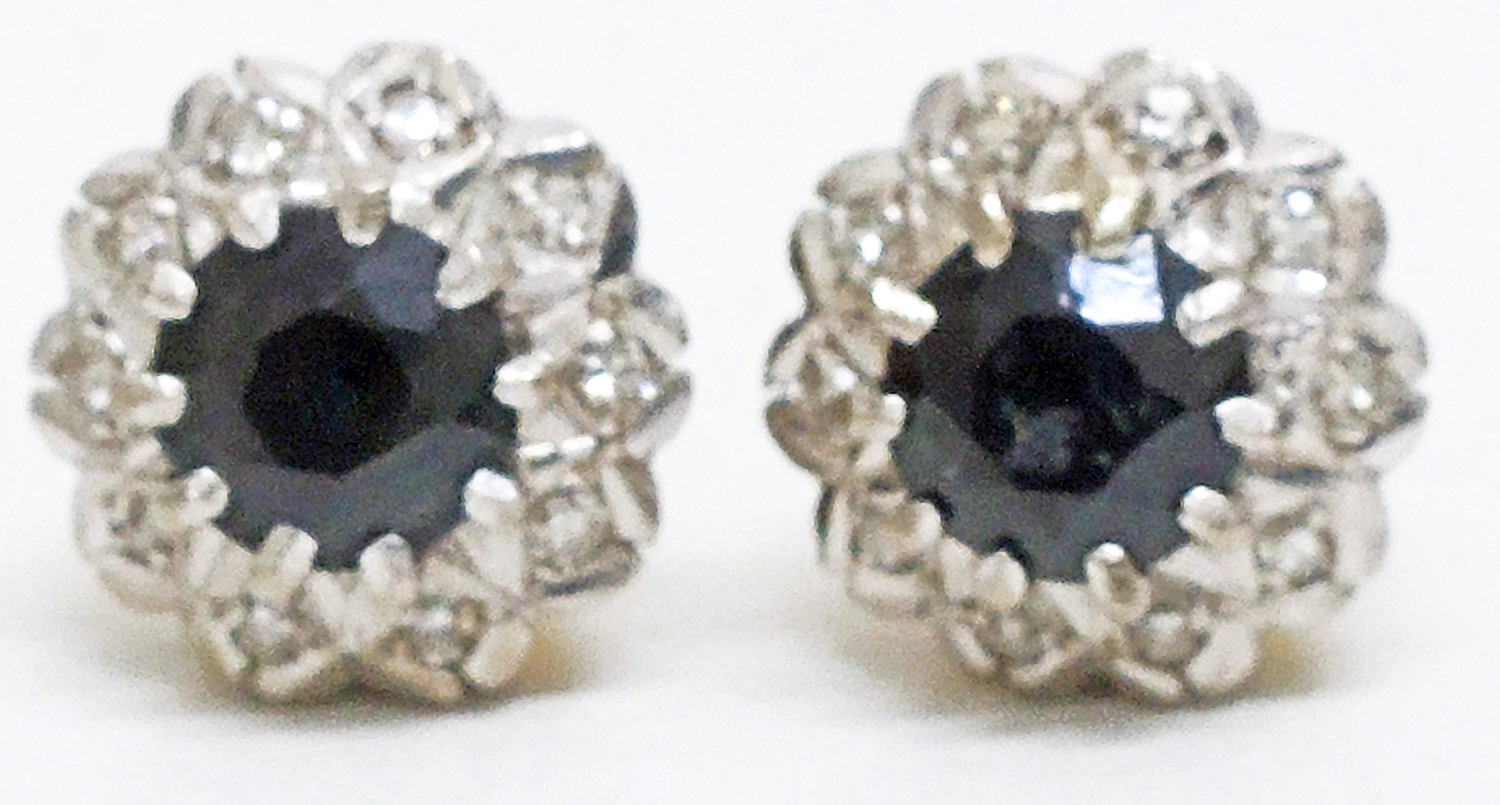 03/2 Sapphire/ Diamond stud earrings, 18k gold, 10 small diam. each approx. 4 g, Ø approx. 10 mm