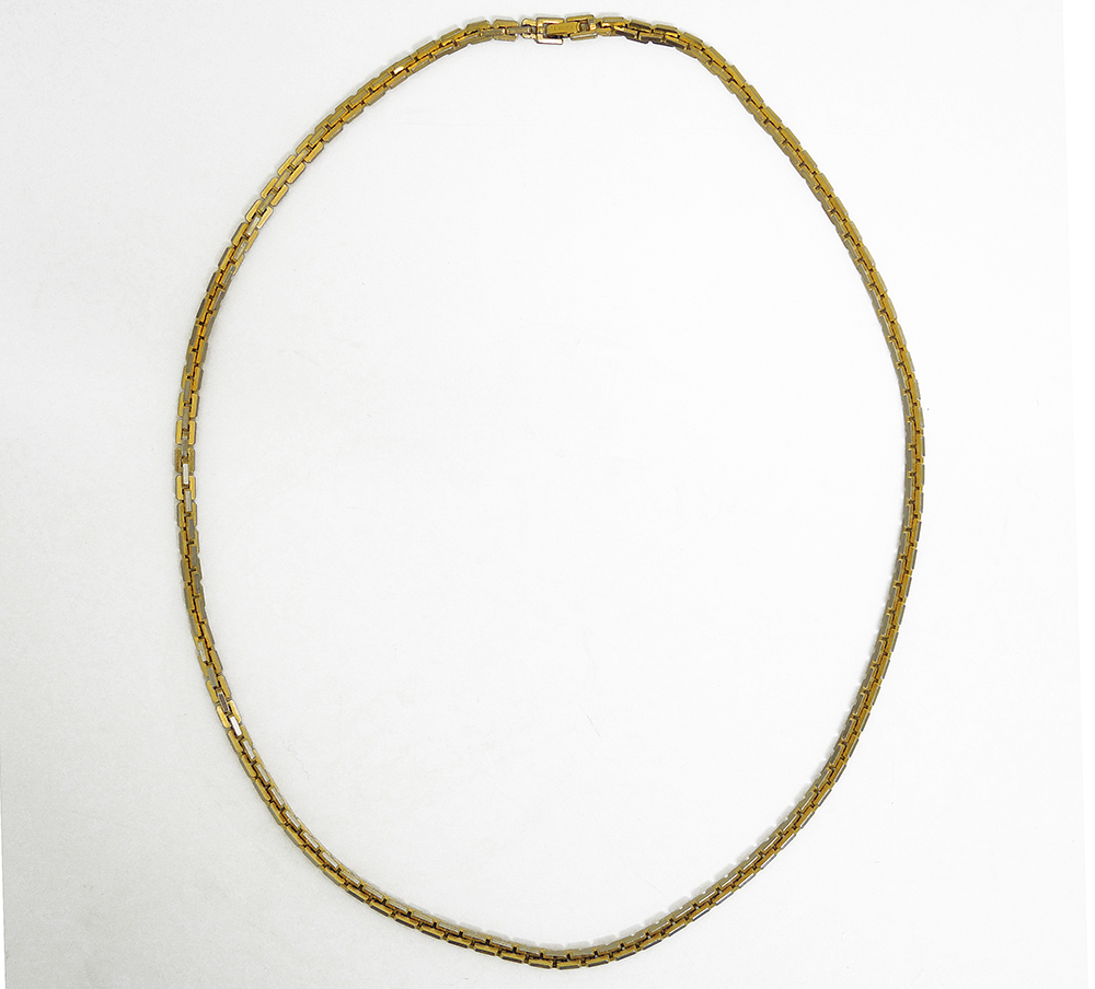 Circa 1970, stylish Monet Long Necklace, outstanding quality in both design and craftsmanship, solid, heavy white metal with a gold-plated finish; the plating is slightly worn/barely noticeable – it can, of course, be re-plated, and given the quality, it is well worth it; diameter approx. 5 mm, total length approx. 74 cm, 88 g.