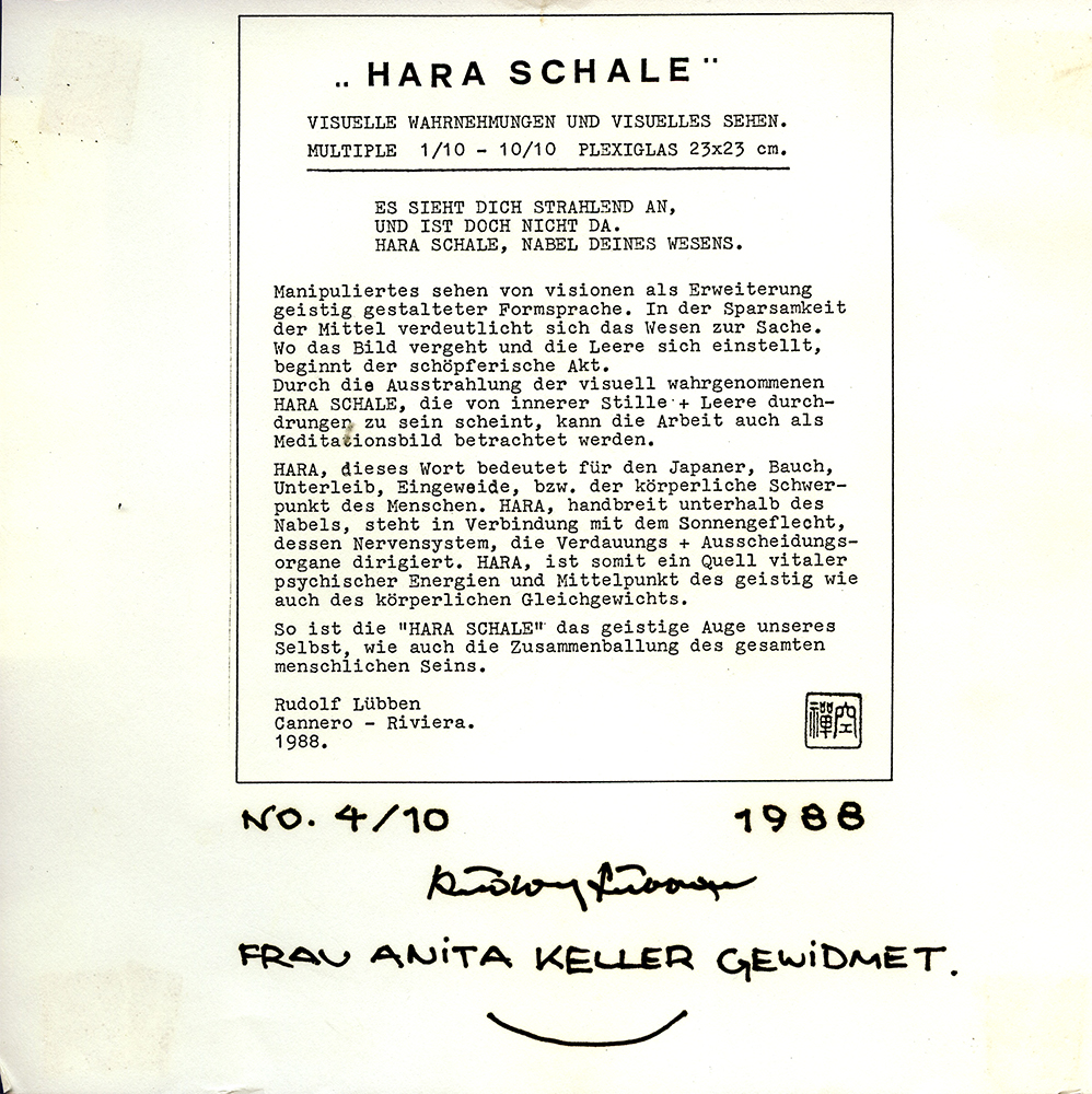 Hara Schale, Plexiglas 4/10, 1988, ca. 23×23 cm, CHF 270 (vormals 1’100)