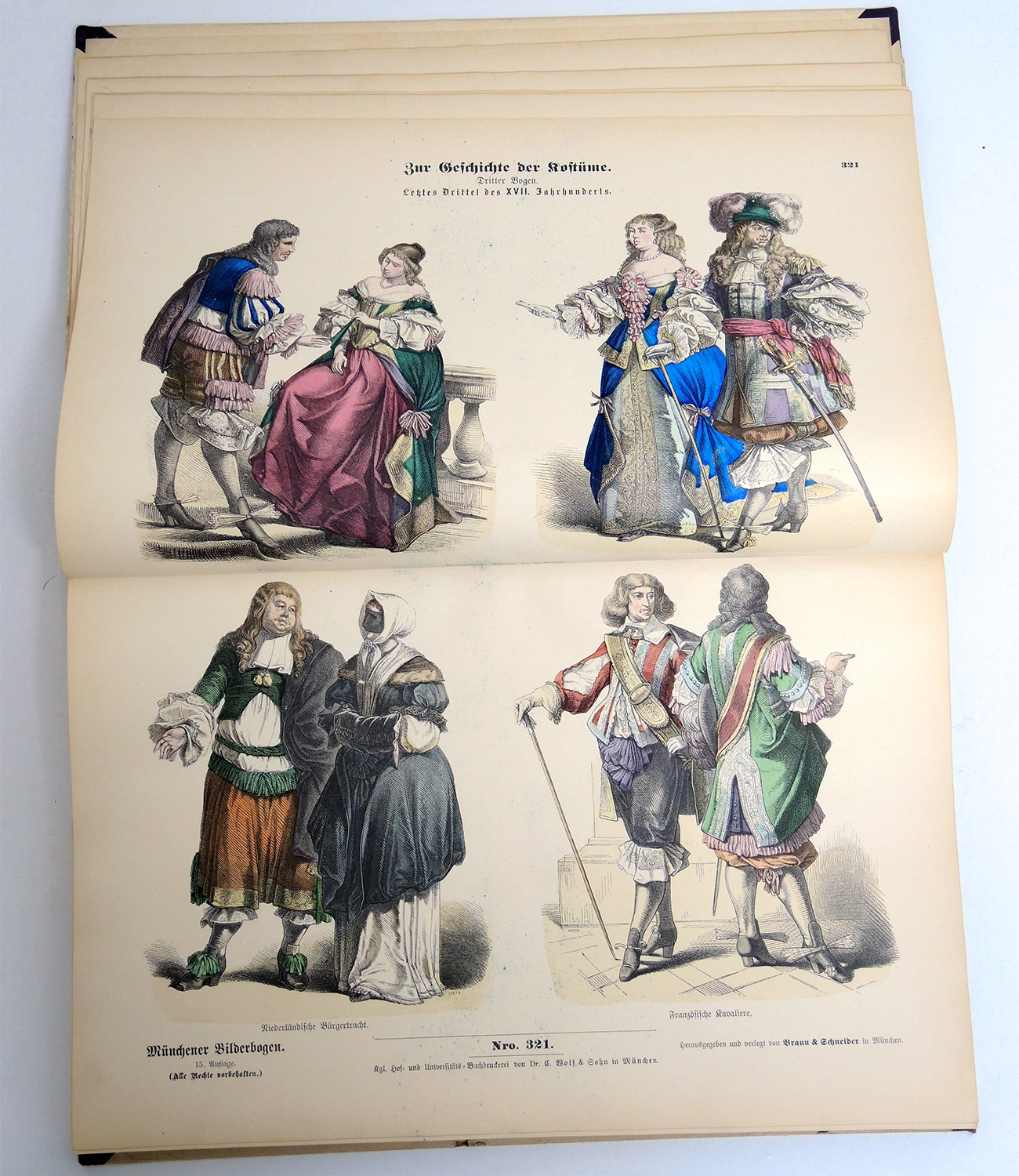 Zur Geschichte der Costüme, 1206 Doppelseiten mit handkolorierten Stichen